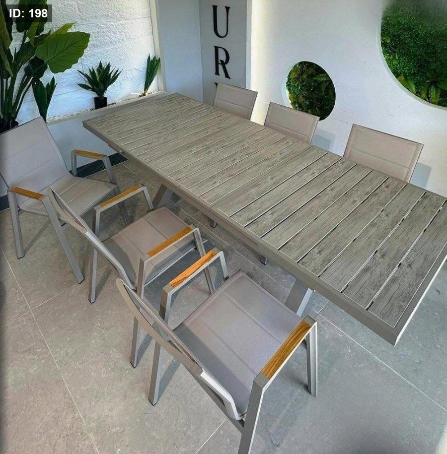 جمعاتك بتكبر مع طاولة الألمنيوم الذكية؛ جودة عالية وتصميم يتمدد من 180 إلى 240 سم بـ 6 مقاعد أنيقة. ✨