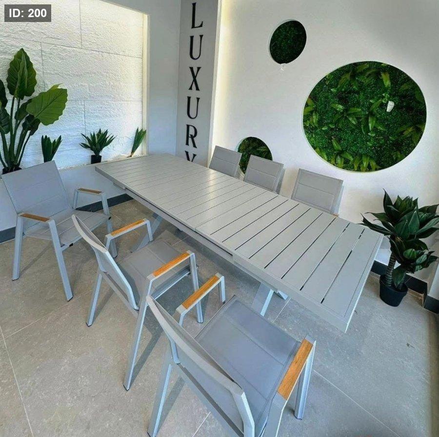 جمعاتك بتكبر مع طاولة الألمنيوم الذكية؛ جودة عالية وتصميم يتمدد من 180 إلى 240 سم بـ 6 مقاعد أنيقة. ✨