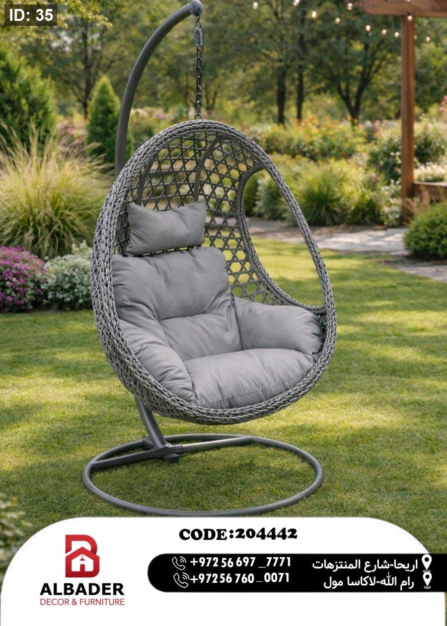 حوّل حديقتك أو شرفتك إلى ملاذ آمن للراحة مع كرسي المرجوحة بتصميمه العصري والأنيق. قطعة فنية تمنحك شعوراً بالتحليق والراحة التامة.