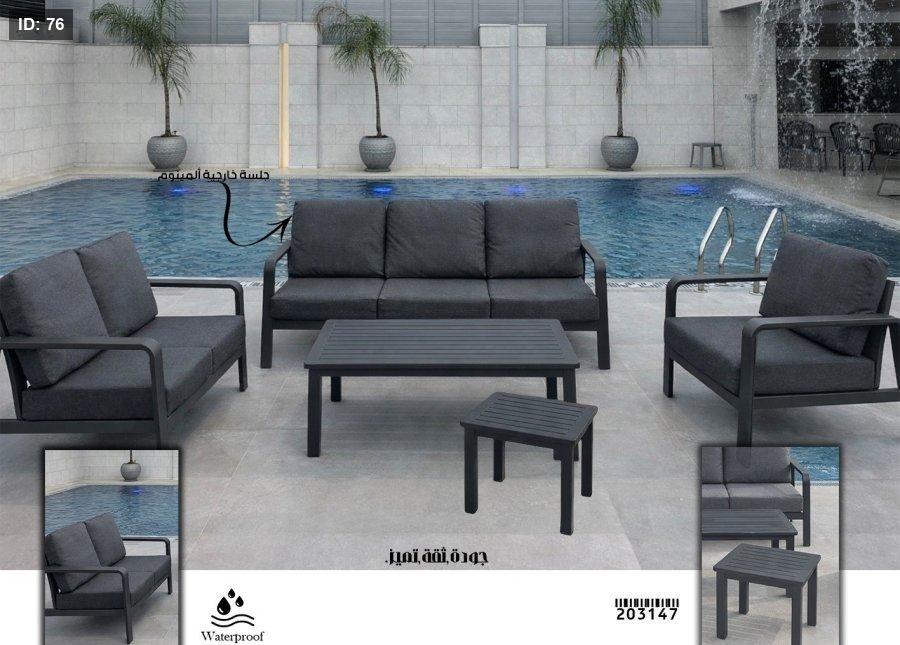 نقدم لكم طقم الجلسة الخارجية من الألمنيوم، المصمم ليجمع بين المتانة العالية والمظهر العصري. بلمسات نهائية مقاومة للمياه وعوامل الجو، لتستمتع بأجمل اللحظات بجانب المسبح أو في حديقتك.