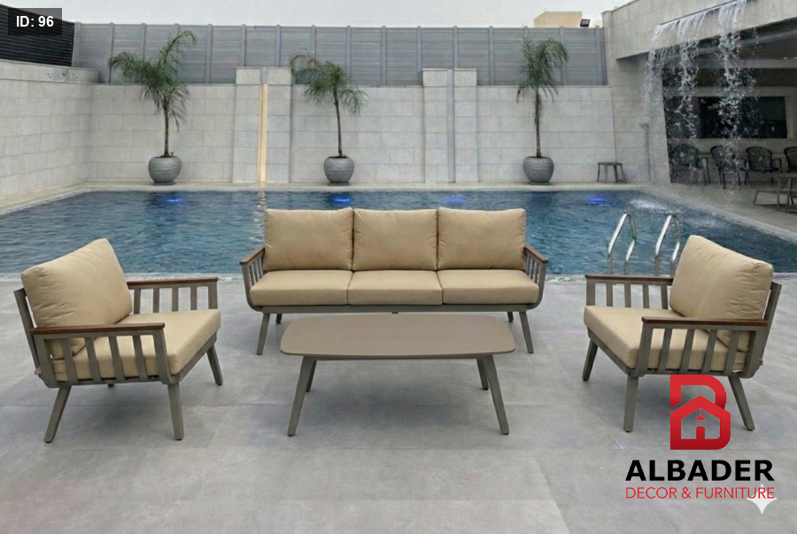 جمال التصميم يلتقي مع قوة التحمل. 💪 طقم ألمنيوم مقاوم للماء، مثالي للجلسات الخارجية المريحة.